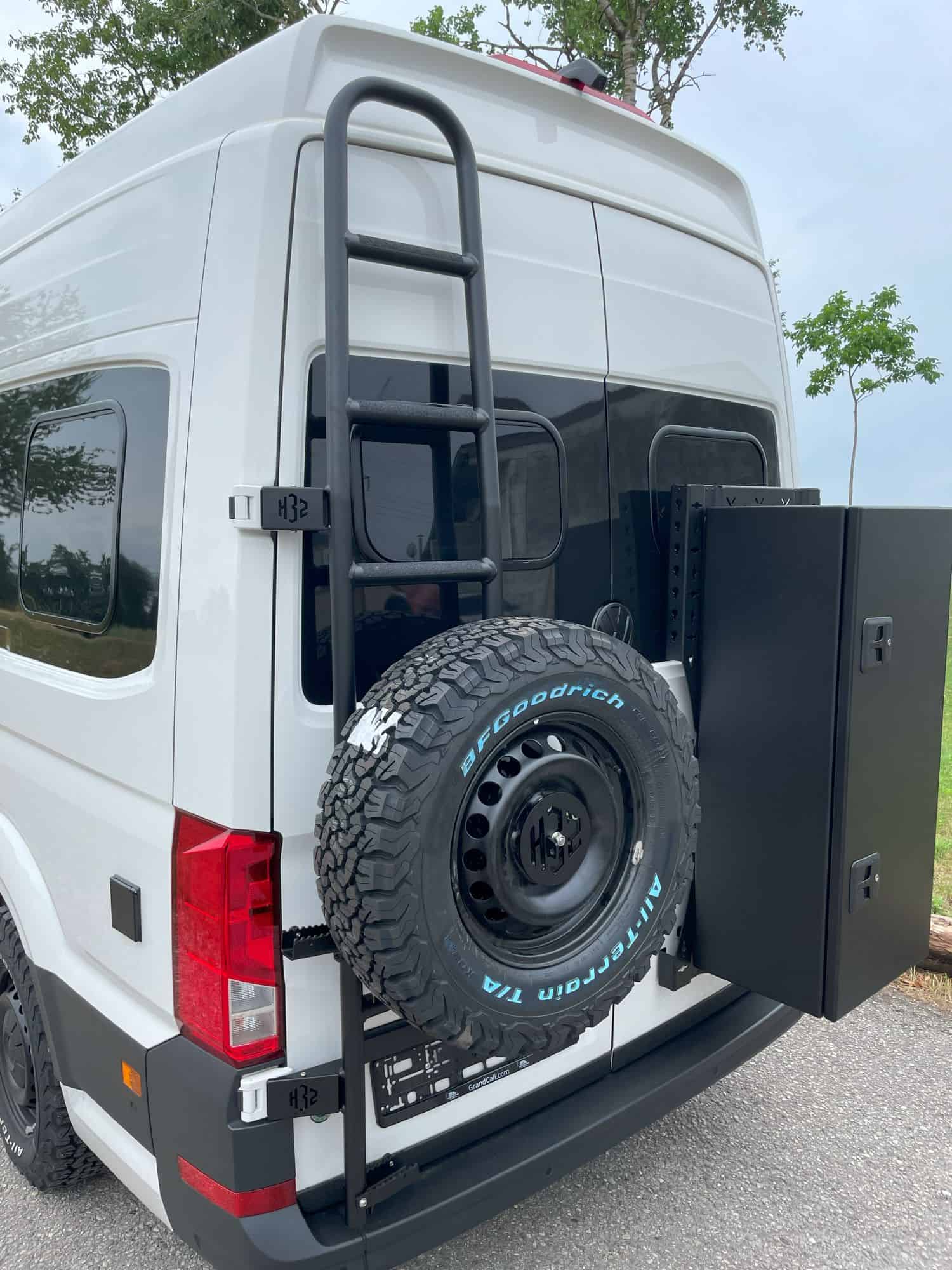 - auf der flexiblen Montageplatte kann die optional erhältliche H32 Radhaube zur Befestigung des Reserverads oder diverses anderes Equipment befestigt werden